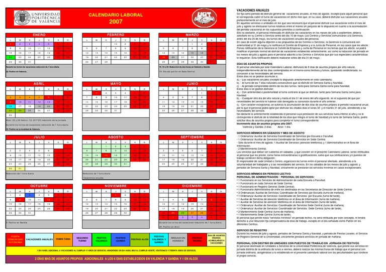 Calendario Laboral Valencia 2007