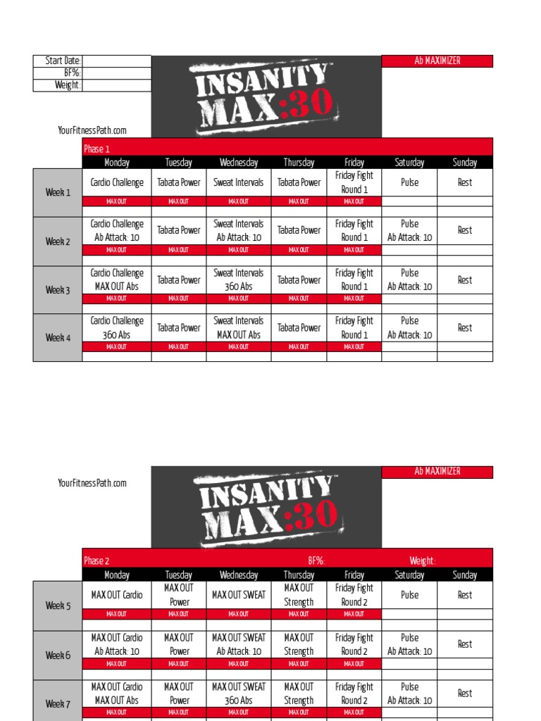 Calendario Insanity Max 30 Pdf