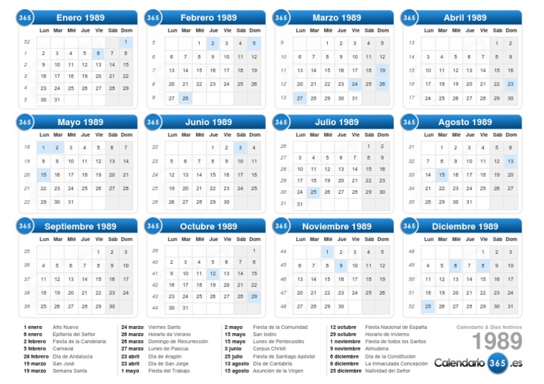 calendario 1989 chile 2021